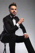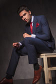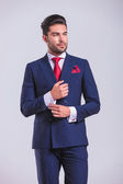 uśmiechnięty mężczyzna młody biznes otwarcie jego kurtka
