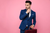 Widok z boku przystojny młody biznes człowiek siedzi
