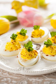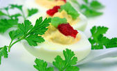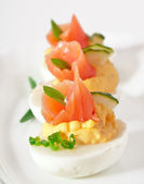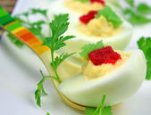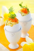 jaja jajecznica ze szczypiorkiem i kawior czerwony