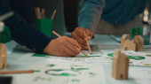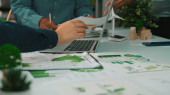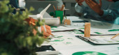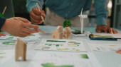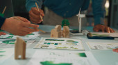 Zdjęcie "Obraz ten odzwierciedla wspólną sesję projektową, podczas której zespół skupia się na zrównoważonej architekturze, modelach prezentacji, szkicach i ekologicznych koncepcjach na stole. SACTR" może być wykorzystywane do celów osobistych i komercyjnych zgodnie z warunkami zakupionej licencji Royalty-free. Obraz jest dostępny do pobrania w jakości wysokiej rozdzielczości do 5760x3840.