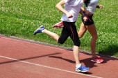 dorosły człowiek działa na bieżnia lekkoatletyczna