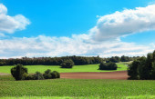 Zielona trawa i światła błękitne niebo