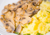 pierwszy rzut oka wieprzowina pierogi grzybowym sosie śmietanowym