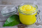 Świeży Jogurt domowej roboty z prawoślazu plastry w szklance