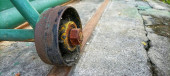 Close up pokazuje stalowy kabel łączący się z pomalowaną na zielono konstrukcją mostu wiszącego Idealny do projektów budowlanych lub inżynieryjnych.