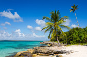palmy na tropikalnej plaży, wyspa saona, Morze Karaibskie