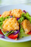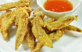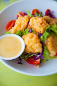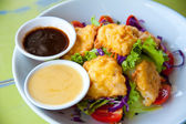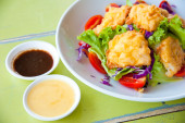 głęboko smażony wonton na biały danie z sosem śliwkowym