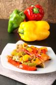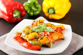 Zdjęcie "paprykę pokroić w plasterki i pieczone na patelni" może być wykorzystywane do celów osobistych i komercyjnych zgodnie z warunkami zakupionej licencji Royalty-free. Obraz jest dostępny do pobrania w jakości wysokiej rozdzielczości do 5760x3840.