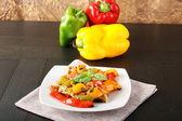 paprykę pokroić w plasterki i pieczone na patelni