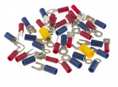 Połączeń elektronicznych zaciskane na zwykłym białym tle.