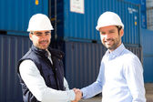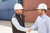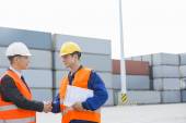 Zdjęcie "Doker i inspektora uzgadniania przed kontenerów" może być wykorzystywane do celów osobistych i komercyjnych zgodnie z warunkami zakupionej licencji Royalty-free. Obraz jest dostępny do pobrania w jakości wysokiej rozdzielczości do 5760x3840.