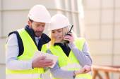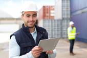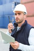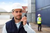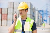 Zdjęcie "Młody atrakcyjny Doker przy użyciu telefonu komórkowego w pracy" może być wykorzystywane do celów osobistych i komercyjnych zgodnie z warunkami zakupionej licencji Royalty-free. Obraz jest dostępny do pobrania w jakości wysokiej rozdzielczości do 5760x3840.