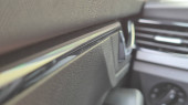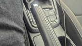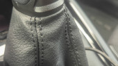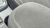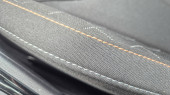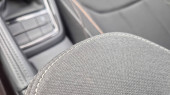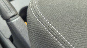 Widok z bliska na zagłówek fotelika samochodowego z pluszową czarną skórą ze szczegółowymi szwami i błyszczącym mechanizmem regulacji chromu pokazującym komfort i elementy luksusowe.