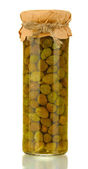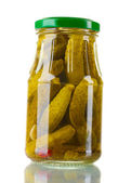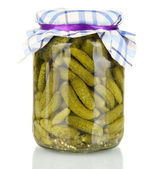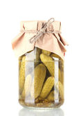 marynowane ogórki w szklanym słoiku wyizolowanym na białym