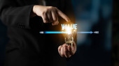 Koncepcja pomiaru i regulacji wartości pokazująca poziom wartości, wydajności i optymalizacji z naciskiem na analizę danych, kalibrację i ulepszanie Vouch