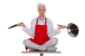 Zdjęcie "Szczęśliwa kobieta szef z nożem i pieniądze" może być wykorzystywane do celów osobistych i komercyjnych zgodnie z warunkami zakupionej licencji Royalty-free. Obraz jest dostępny do pobrania w jakości wysokiej rozdzielczości do 5760x3840.