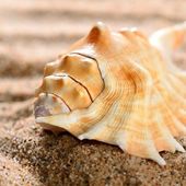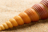 Morze? powłoki leżącego na czystego, żółtego piasku. Makro. Miejsce.