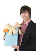uśmiechający się znak gospodarstwa młodego człowieka wgrac na tekst