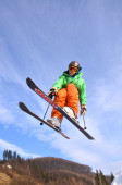 Zdjęcie "narciarz w górach inhigh skok w słoneczny dzień." może być wykorzystywane do celów osobistych i komercyjnych zgodnie z warunkami zakupionej licencji Royalty-free. Obraz jest dostępny do pobrania w jakości wysokiej rozdzielczości do 5760x3840.
