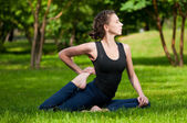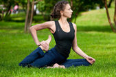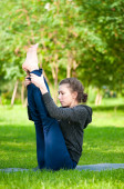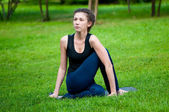 Zdjęcie "kobieta robi ćwiczenia rozciągające. Joga" może być wykorzystywane do celów osobistych i komercyjnych zgodnie z warunkami zakupionej licencji Royalty-free. Obraz jest dostępny do pobrania w jakości wysokiej rozdzielczości do 5760x3840.