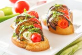 Italian crostini with aubergine, tomato and cheese macro