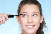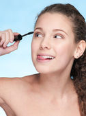 dziewczyna z doskonałym kręcone włosy, leżąc na łóżku futro