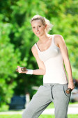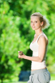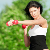 kobieta robi hantle ćwiczenia odkryty