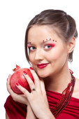 bliska portret młodej kobiety emocjonalne z jabłkiem