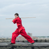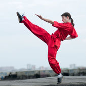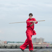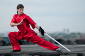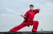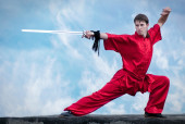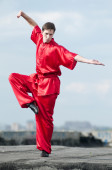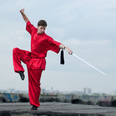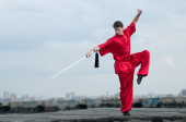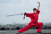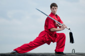 wushoo mężczyzna w czerwonej praktyki sztuki walki
