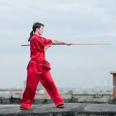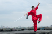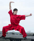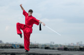 wushoo mężczyzna w czerwonej praktyki sztuki walki