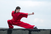 wushoo mężczyzna w czerwonej praktyki sztuki walki