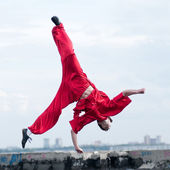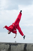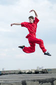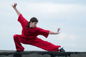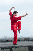 wushoo mężczyzna w czerwonej praktyki sztuki walki