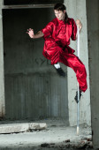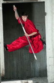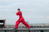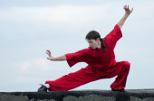 wushoo mężczyzna w czerwonej praktyki sztuki walki