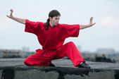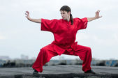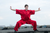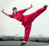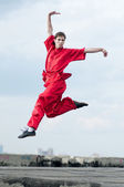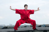 wushoo mężczyzna w czerwonej praktyki sztuki walki