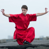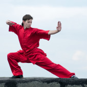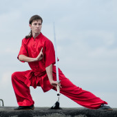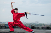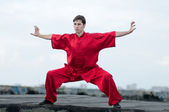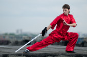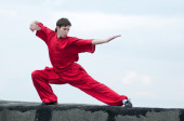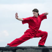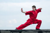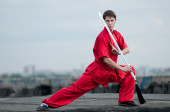wushoo mężczyzna w czerwonej praktyki sztuki walki