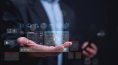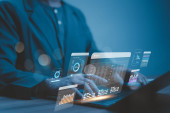 Zdjęcie "Profesjonalista korzystający z laptopa z zaawansowaną technologią AI i analityką danych do zarządzania projektami. Wizualizacje postępów i pomoc w planowaniu strategicznym w pobudzaniu wzrostu przedsiębiorstw i rozwoju technologii cyfrowych" może być wykorzystywane do celów osobistych i komercyjnych zgodnie z warunkami zakupionej licencji Royalty-free. Obraz jest dostępny do pobrania w jakości wysokiej rozdzielczości do 5760x3840.