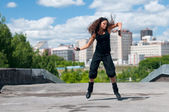 piękna dziewczyna taniec nowoczesny styl w krajobraz miasta