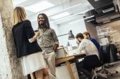 Zdjęcie "Koledzy mówią w urzędzie" może być wykorzystywane do celów osobistych i komercyjnych zgodnie z warunkami zakupionej licencji Royalty-free. Obraz jest dostępny do pobrania w jakości wysokiej rozdzielczości do 5760x3840.
