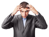 portret mężczyzny młody biznes patrząc w depresji z pracy. na białym tle nad