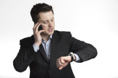 portret przystojny młody biznesmen rozmowy na telefon komórkowy. na białym tle