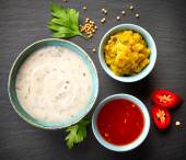 Zdjęcie "różne sosy kąpieli" może być wykorzystywane do celów osobistych i komercyjnych zgodnie z warunkami zakupionej licencji Royalty-free. Obraz jest dostępny do pobrania w jakości wysokiej rozdzielczości do 5760x3840.