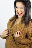 Walentynki. piękna kobieta uśmiechający się z prezentem