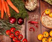 Składniki do spaghetti bolognese na drewniane tła