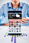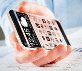smartphone rezygnować przeźroczysty ekran w ludzkich rąk.