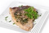 płyty stek i zieloną sałatką
