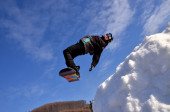 Zdjęcie "Snowboardzista podczas skoku w wysokie góry w słoneczny dzień." może być wykorzystywane do celów osobistych i komercyjnych zgodnie z warunkami zakupionej licencji Royalty-free. Obraz jest dostępny do pobrania w jakości wysokiej rozdzielczości do 5760x3840.