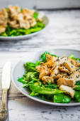 Zdjęcie "Sałatka z kurczaka zielony na drewniane tła" może być wykorzystywane do celów osobistych i komercyjnych zgodnie z warunkami zakupionej licencji Royalty-free. Obraz jest dostępny do pobrania w jakości wysokiej rozdzielczości do 5760x3840.