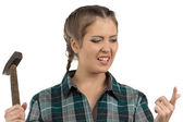 atrakcyjna młoda kobieta z młotkiem i śrubokrętem i isol