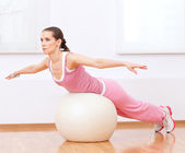 młoda kobieta w sprawny, robienie ćwiczeń fitness z fit ball.