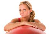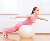 młoda kobieta w sprawny, robienie ćwiczeń fitness z fit ball.